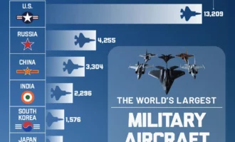 اینفوگرافی زیر، میزان کل ناوگان هوایی هر کشور را نشان میدهد. این اعداد شامل تمام هواپیماها و بالگردهای نیروهای هوایی، ارتش، نیروی دریایی و نیروهای ...
